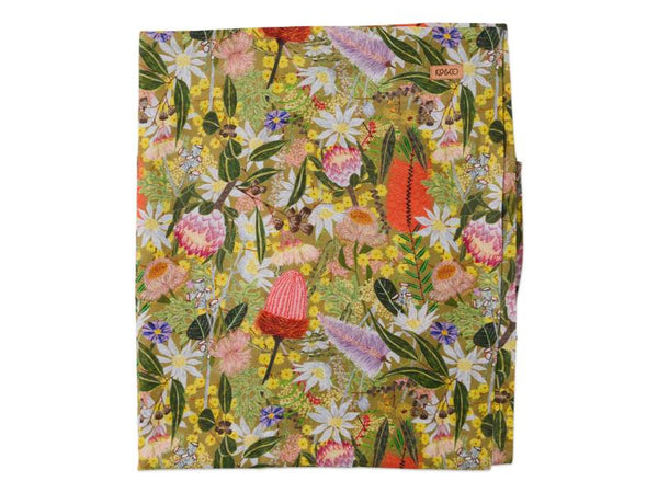 Set the table, set the mood! Our Native Plantation Tablecloth is bold, beautiful and a Kip&Co signature print, made for everyday feasts and special moments alike. With its soft drape and luxe texture, it’s the easiest way to bring a pop of personality to your dining space. Made from a linen cotton blend, this tablecloth features native Australian flora in an all over print on an olive green base. Layer with our range of table linens, cutlery and glassware to finish off the look, and really create a moment to remember.